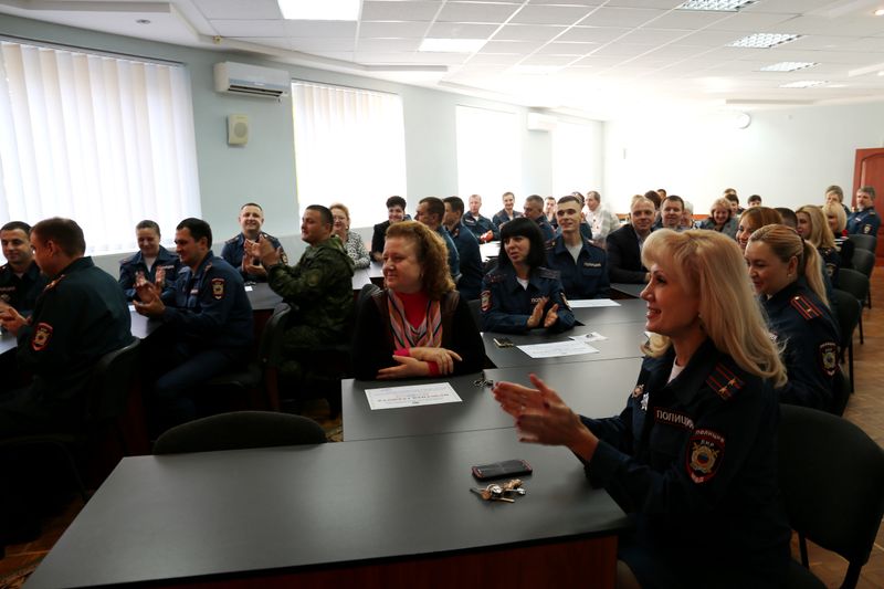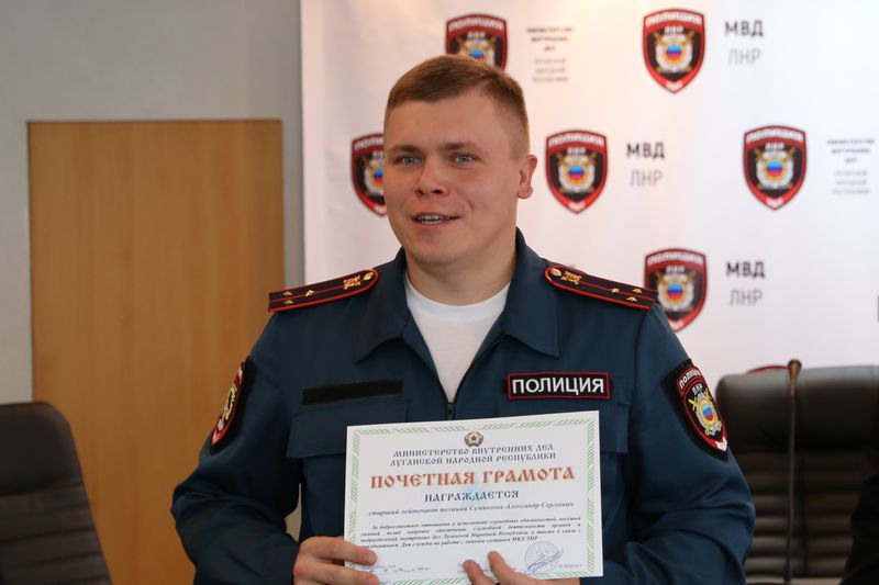 Сотрудники Управления по работе с личным составом МВД были отмечены почетными грамотами и знаками отличия в службе. Начальнику отдела профессиональной подготовки УРЛ МВД ЛНР Сергею Буркину было присвоено очередное звание подполковник полиции.