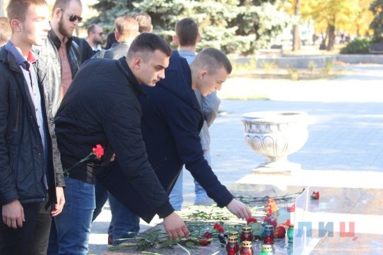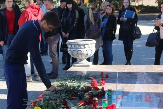 В центре Луганска прошла траурная минута молчания в память погибших в Керченском политехническом колледже.