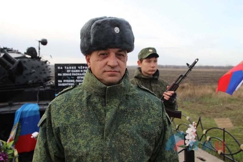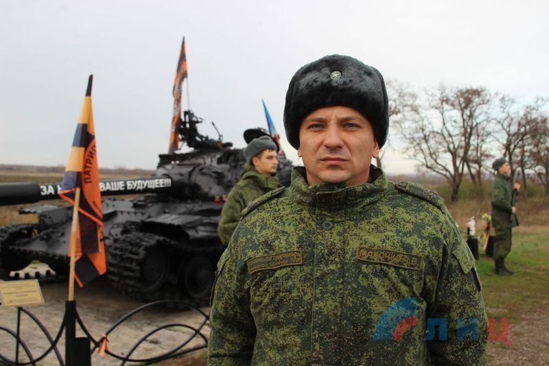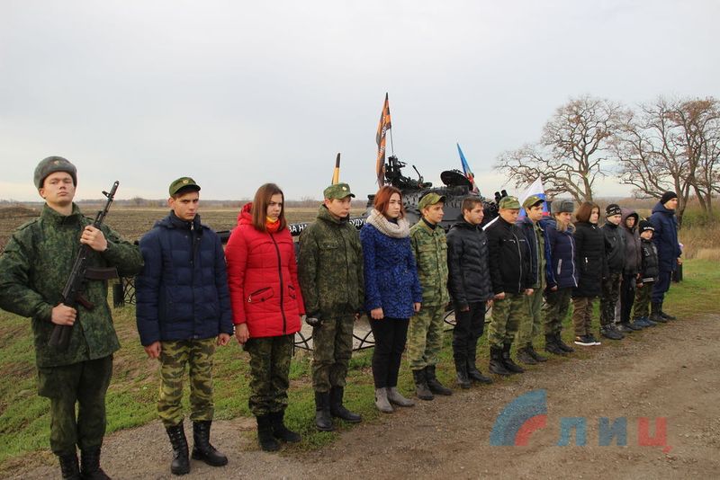 Молодежь ЛНР в День народного единства выставила почетный караул у подбитого танка в Хрящеватом
