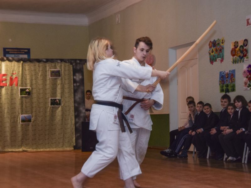 Спортсменами Луганского клуба айкидо Seidokan dojo было организовано показательное выступление, на котором продемонстрировали базовые приемы айкидо, а именно, как правильно защитить себя от атаки с оружием.