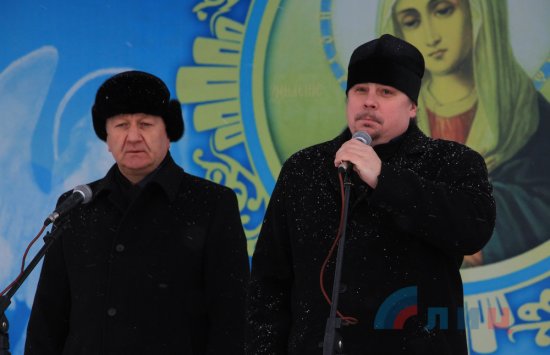 «Дорогие братья и сестры, с Рождеством! Сегодня у нас настоящая русская зима, это здорово! Конечно, много хлопот, но мы их все преодолеем и порадуемся рожденному Господу. Повеселимся, как искони у нас на Руси радовались и ликовали, потому, что Богочеловек пришел на землю: Бог стал человеком ради нашего спасения. Пусть в ваших семьях, в ваших домах, в нашем родном благословенном Луганске будет мир, благополучие, созидание, радость и богоутверждение. С праздником!», - поприветствовал присутствующих настоятель протоиерей Александр Понамарев.
