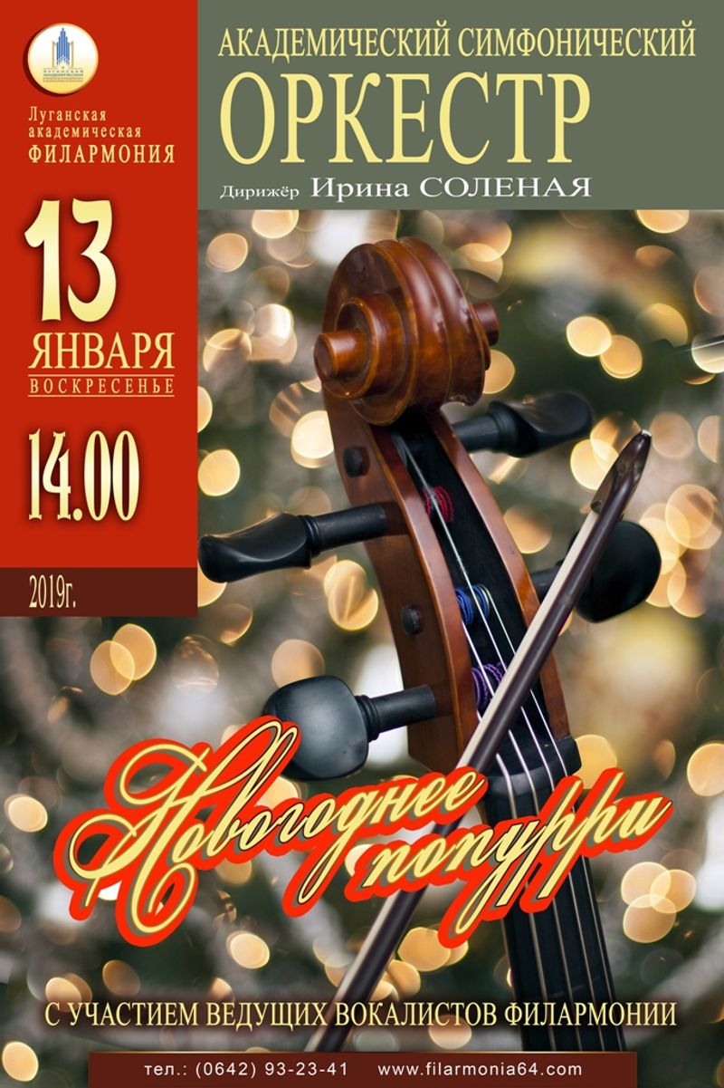 Оркестр Луганской академической филармонии 13 января в 14:00 представит праздничную концертную программу «Новогоднее попурри».