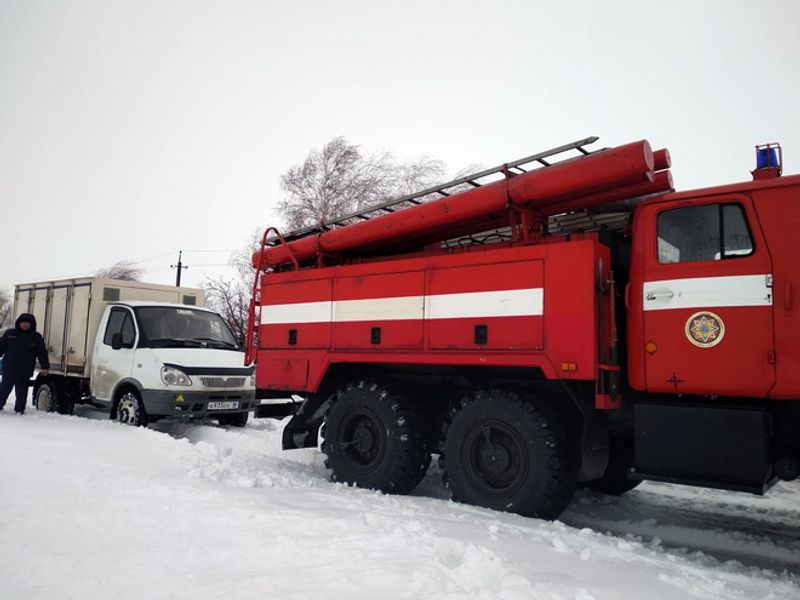 Отмечается, что вблизи был замечен автомобиль подвоза хлеба, который также застрял в снегу.