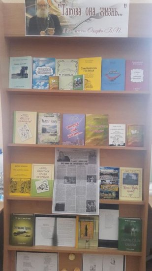 Для гостей работники библиотеки представили выставку «Такова она, жизнь…», на которой представлены были лучшие произведения и издания именинника.