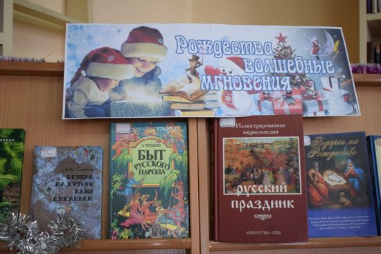 Для присутствующих сотрудники отдела гуманитарной литературы библиотеки организовали тематическую книжную выставку «Рождества волшебные мгновенья».