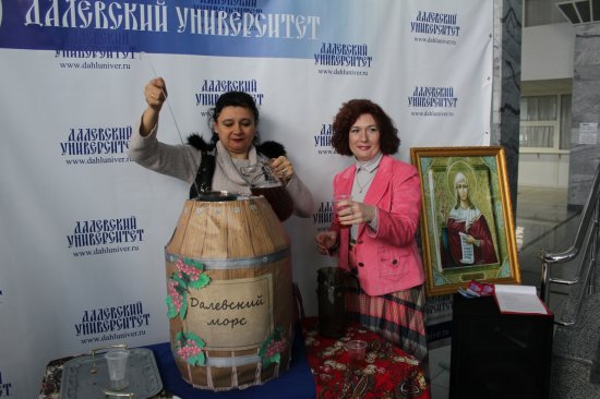 В завершение мероприятия ведущие пригласили гостей, студентов и преподавателей попробовать «Далевский морс», который традиционно варят в вузе 25 января.