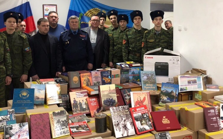 Доставили в кадетский корпус продукты питания, хозяйственный и спортивный инвентарь, научно-познавательную, художественную и патриотическую литературу представители Союза писателей России, Центра Фёдора Ушакова и международного Союза общественных объединений «Общественный Комитет ветеранов войн».