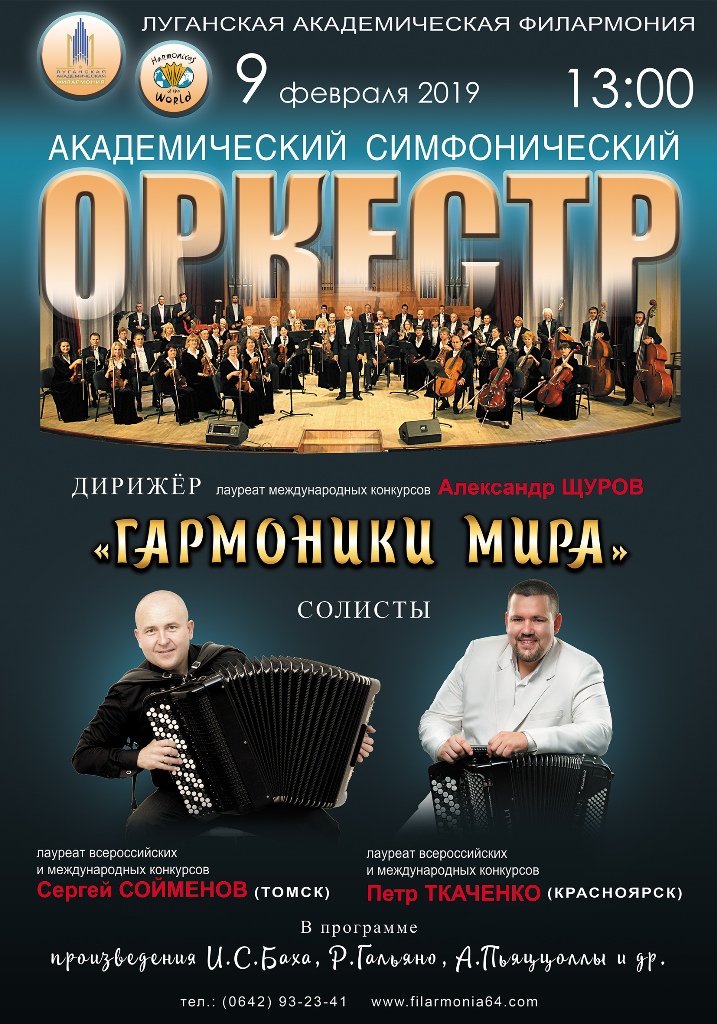 9 февраля музыканты из Российской Федерации совместно с оркестром Луганской филармонии представят уникальную программу «Гармоники мира».