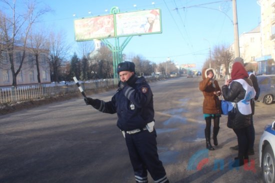 Сообщается, что акцию провели активисты проекта «Молодая гвардия» общественного движения «Мир Луганщине» совместно с сотрудниками ГИБДД.