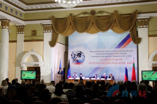 В Колонном зале Луганска состоялось открытие международного научно-практического форума с участием представителей ЛНР, ДНР, России и Белоруссии.