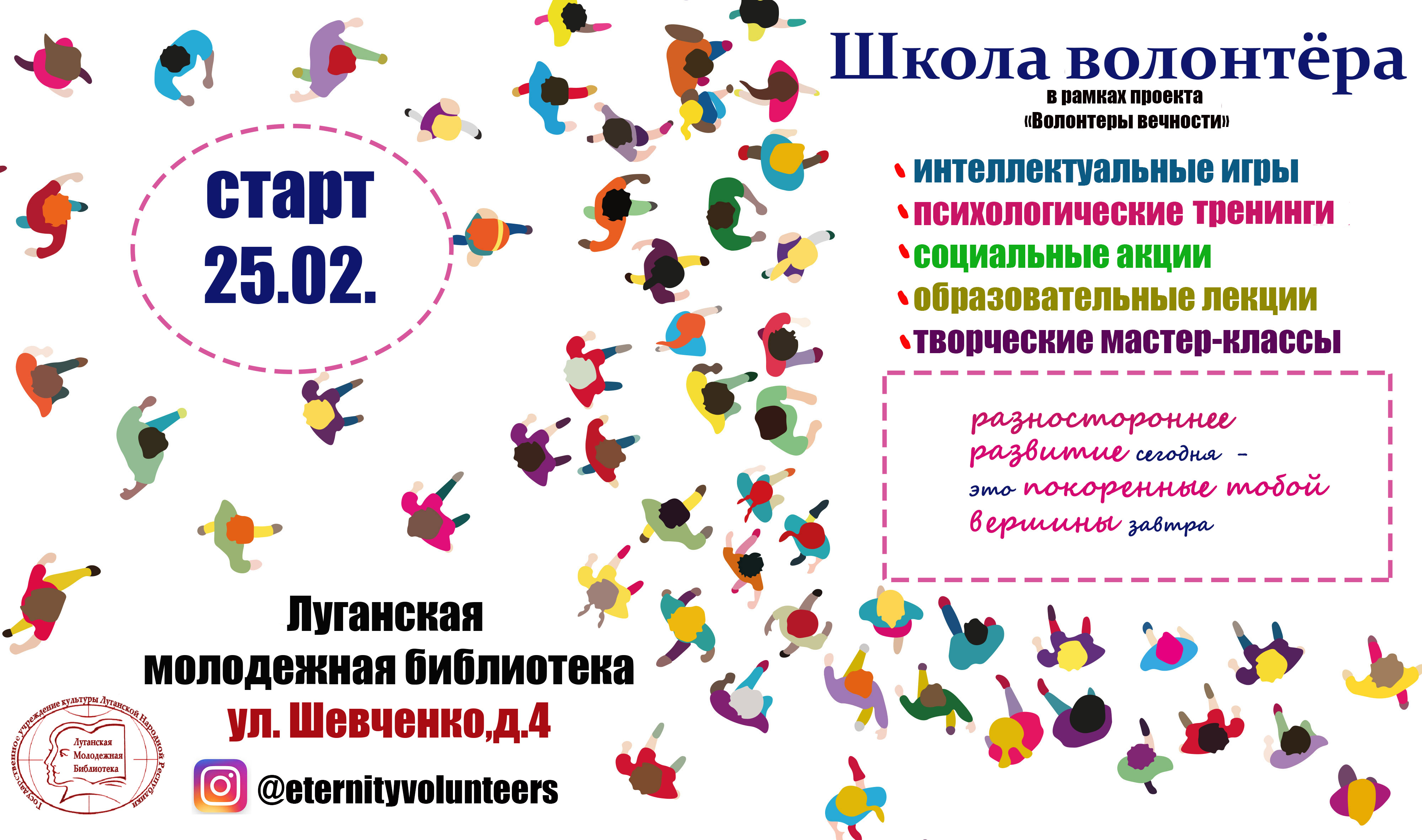25 февраля в Луганской молодёжной библиотеке начинает свою работу образовательная программа «Школа волонтера» в рамках проекта «Волонтеры вечности».