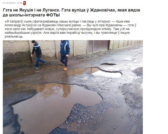 На сайте была опубликована новость о плохих дорогах с фото ям на улицах в белорусском городе Ждановичи Минской области, где ездит наибольшее количество транспорта. В сообщении сказано, что улицы – это позор города. В заголовке данной статьи издательство написало «Это не Якутия И не Луганск», чем оскорбило наш город.
