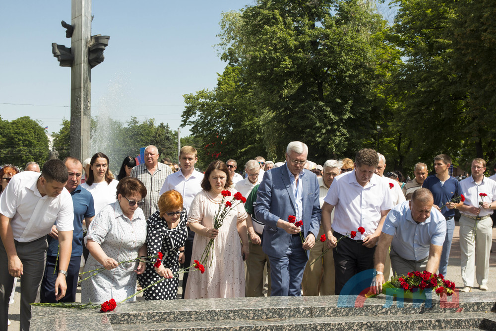 В мероприятии приняли участие представители властей Республики и Луганска, активисты молодежных организаций ЛНР, общественники и жители города. Присутствующие возложили гирлянду и цветы к Пилону Славы, Могиле Неизвестного солдата, памятнику жителям Луганщины, павшим от рук карателей-националистов из ОУН-УПА и почтили минутой молчания память погибших в годы Великой Отечественной войны и конфликта на Донбассе.