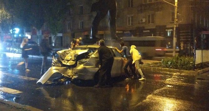 Авария в Луганске: автомобиль врезался в бетонный постамент