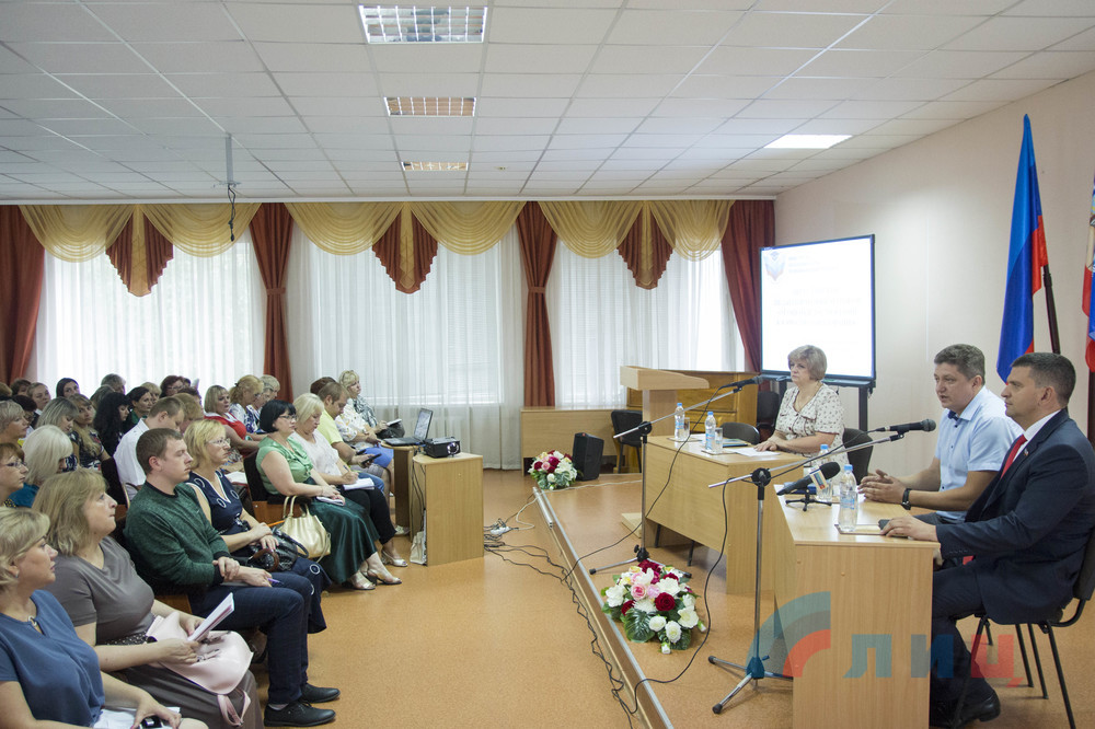Министр образования и науки ЛНР Сергей Цемкало проинформировал педагогических работников Республики об основных векторах образовательного процесса в новом учебном году и реализации новых образовательных проектов. В частности, он отметил, что ведомством планируется устранение нехватки учебников и пополнение автобусного парка для учреждения образования.