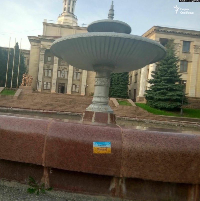 В центре Луганска проукраинские «патриоты» расклеили листовки с поздравлениями с Днем Независимости Украины.