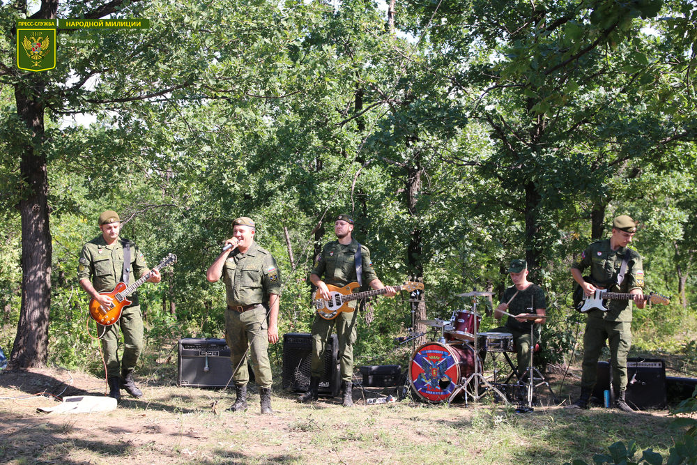 После окончания учений руководитель Республики вместе с военнослужащими пообедал полевой солдатской кашей и ответил на интересующие их вопросы. С концертом для гостей выступил военно-музыкальный ансамбль Народной милиции ЛНР «Новороссия».