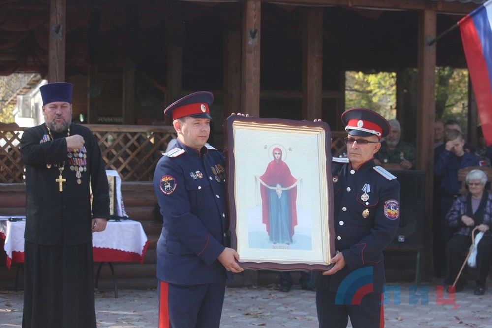 Казаки Межрегиональной организации по развитию и поддержанию казачьих традиций «Казачья община "Георгиевская"» Москвы передали Луганскому округу донских казаков Всевеликого Войска Донского икону Божией Матери.