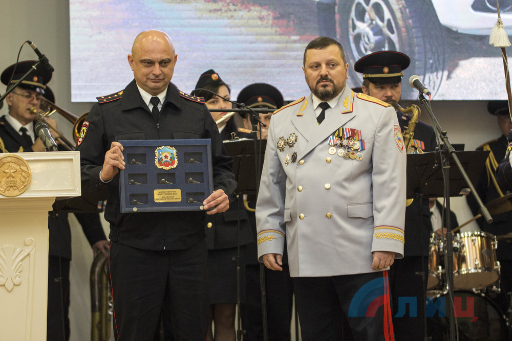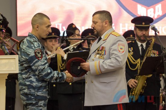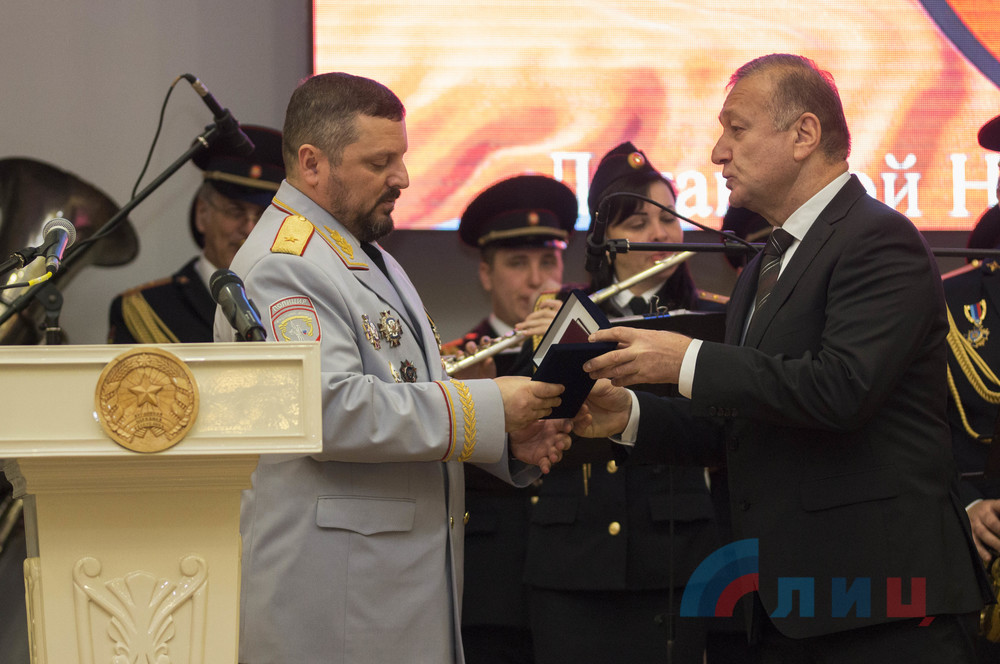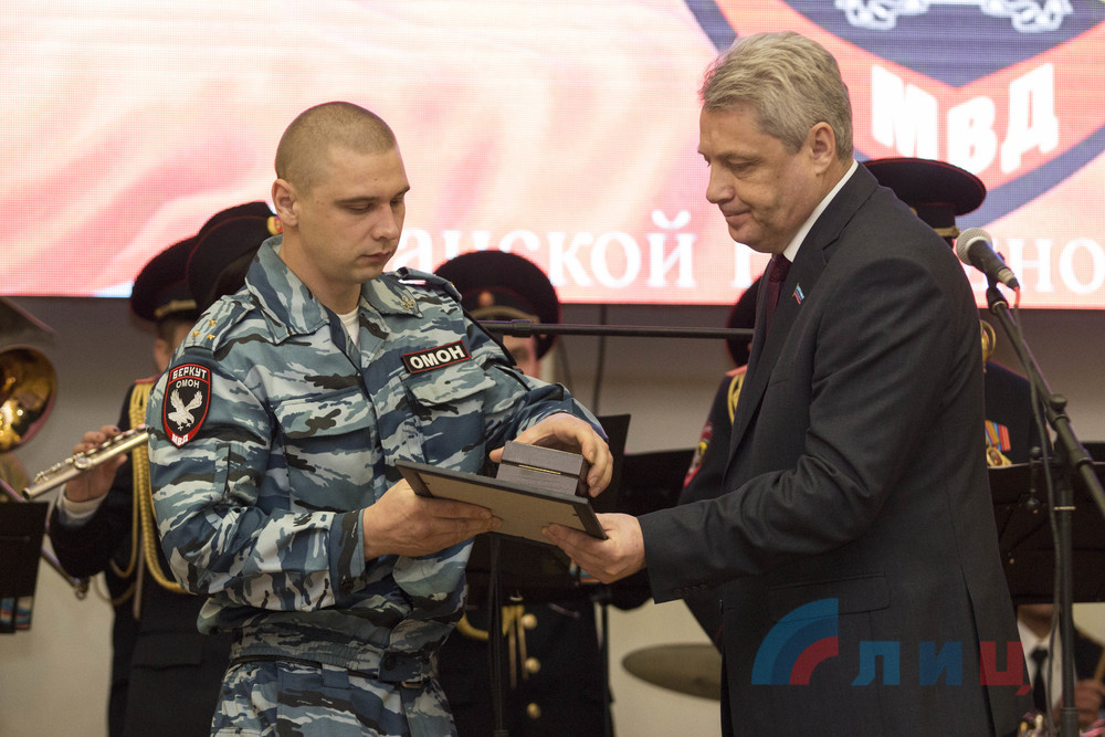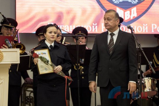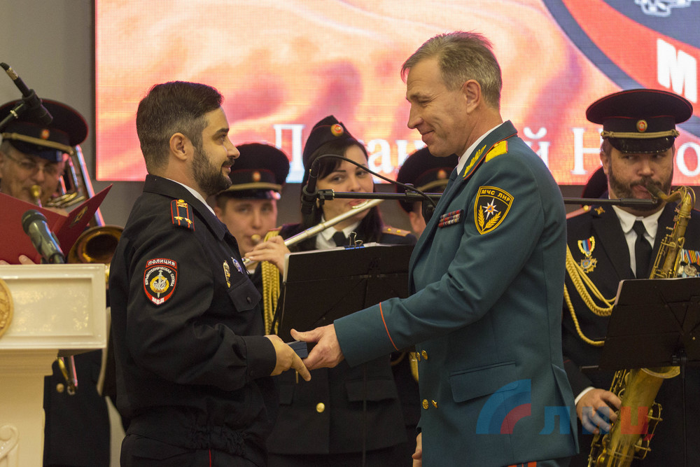 С профессиональным праздником сотрудников МВД поздравили министр чрезвычайных ситуаций и ликвидации последствий стихийных бедствий ЛНР Евгений Кацавалов и глава администрации Луганска Манолис Пилавов.