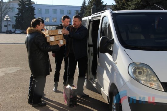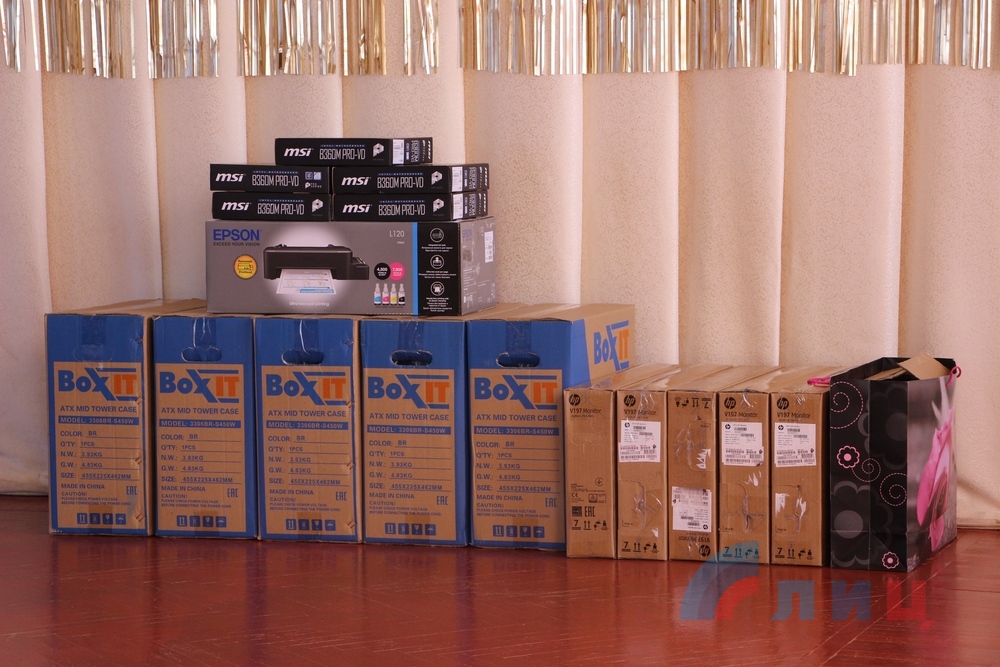 Помощник главы ЛНР Марина Филиппова и председатель Общественной палаты ЛНР Алексей Карякин передали детской школе искусств Первомайска от Леонида Пасечника пять компьютеров и принтер.