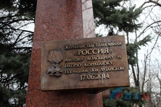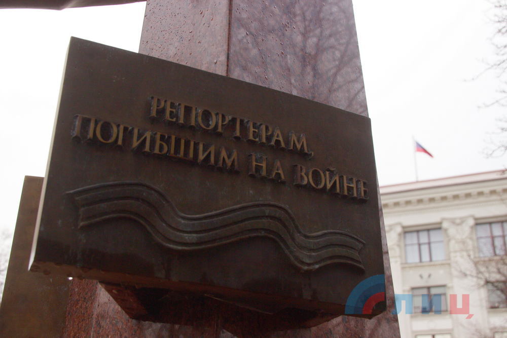 Памятный знак журналистам, погибшим в Донбассе, был открыт в Луганске 17 июня 2019 года главой ЛНР Леонидом Пасечником.