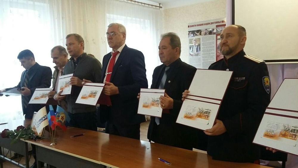 Специальное гашение блока художественных марок «Погибшим за правду», посвященного памяти журналистов Всероссийской государственной телерадиокомпании Игоря Корнелюка и Антона Волошина, состоялось в школе поселка Металлист под Луганском.