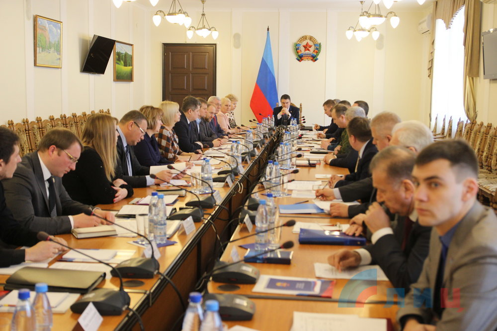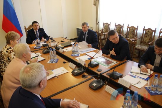 В совещании приняли участие председатель Народного Совета ЛНР Денис Мирошниченко, первый заместитель председателя Правительства Республики Юрий Говтвин, руководитель администрации главы ЛНР Ольга Бас, руководители профильных министерств и представители общественности.