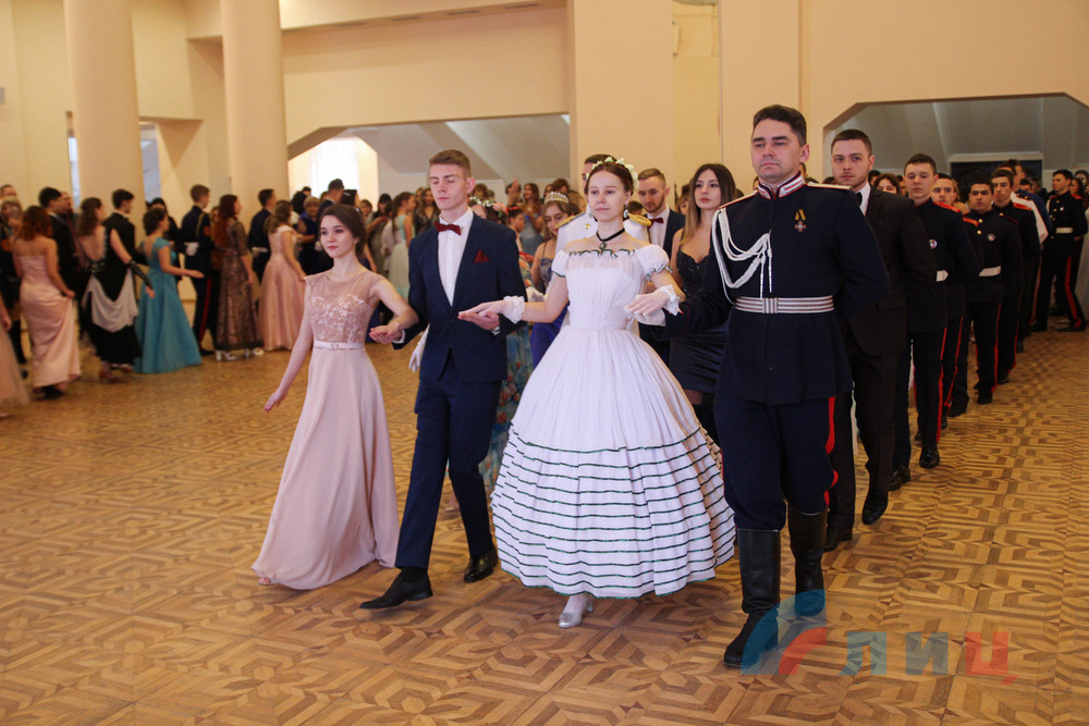 В мероприятии приняли участие кадеты, студенты и учащиеся из ряда городов и районов ЛНР. Председатель ПАД Алексей Селиванов рассказал, что на бал мог попасть любой желающий при условии соблюдения бального дресс-кода: бальное или вечернее платье для дам, костюм с галстуком-бабочкой и белыми перчатками для кавалеров.