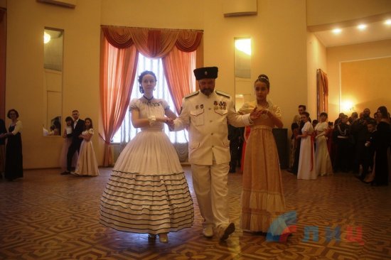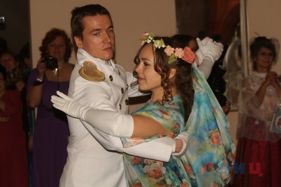 В полонезе, открывавшем бал, участвовали 260 человек, еще примерно столько же стояли вокруг. Это учащиеся, студенты и кадеты, Луганска, Алчевска, Брянки, Краснодона, Молодогвардейска, Лутугино и других населенных пунктов нашей Республики, многие из них уже не первый раз принимают участие в балах.