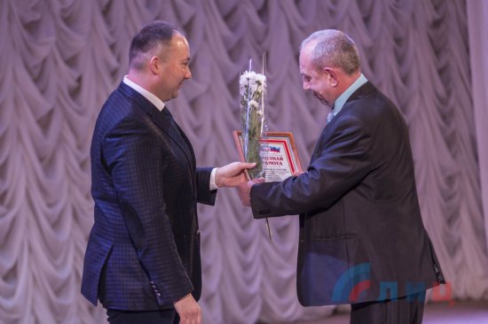 Лучшие работники отрасли в ходе церемонии награждения получили от главы ЛНР Леонида Пасечника знаки «За усердие» второй степени, а также грамоты и благодарности. Отличившиеся работники коммунальных предприятий также получили награды от Народного Совета и Правительства Республики, а от Федерации профсоюзов ЛНР коммунальщики получили нагрудные знаки «Профсоюзная доблесть».