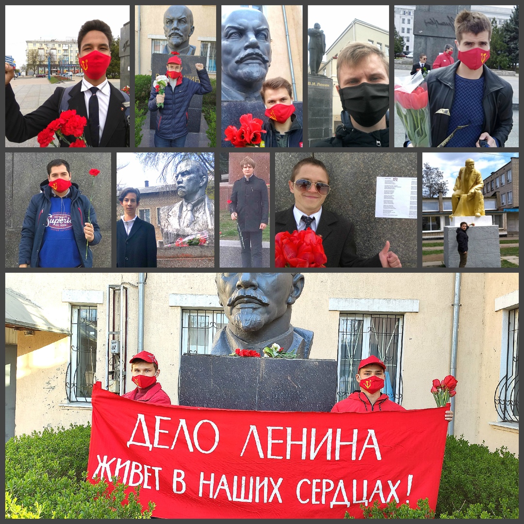 Коммунисты Луганска возложили цветы к памятникам основателя СССР Владимиру Ленину в день 150-летнего юбилея со дня его рождения.
