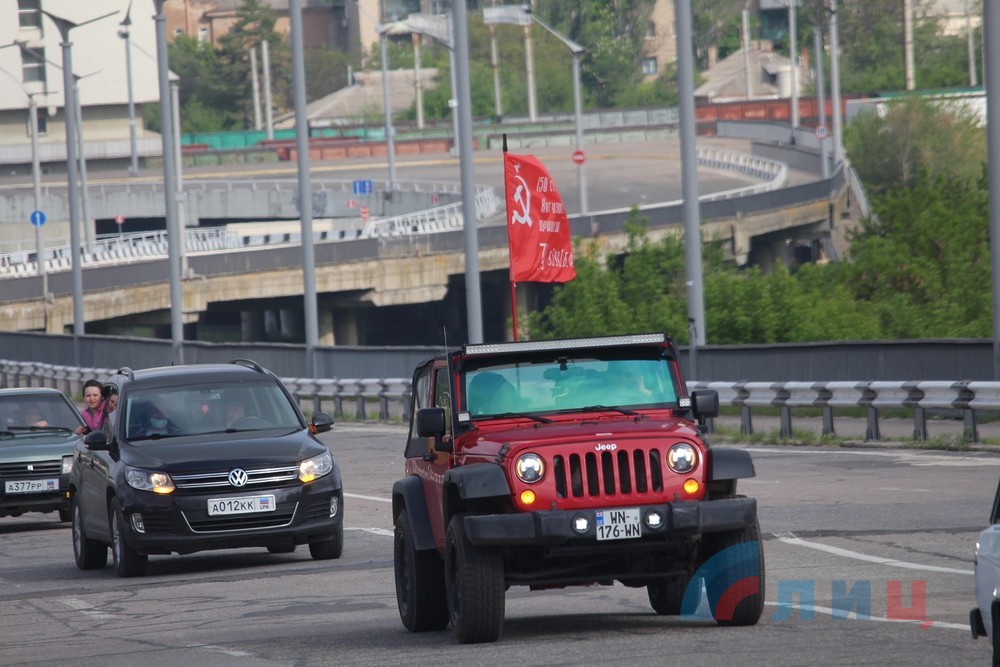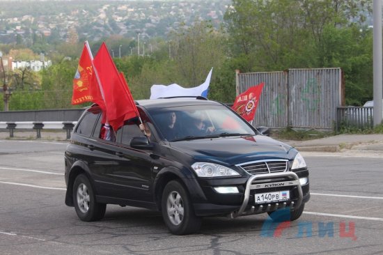 Уже на старте протяженность колонны автомобилей с символикой Победы, флагами России, ЛНР, ДНР и Новороссии составила более двух км. Автомобилисты посетят памятные места столицы Республики, связанные с событиями Великой Отечественной войны.