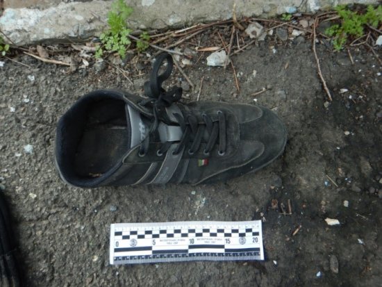 Рядом с телом обнаружены: ветровка мужская черного цвета, шапка вязанная черного цвета, один кроссовок черного цвета.