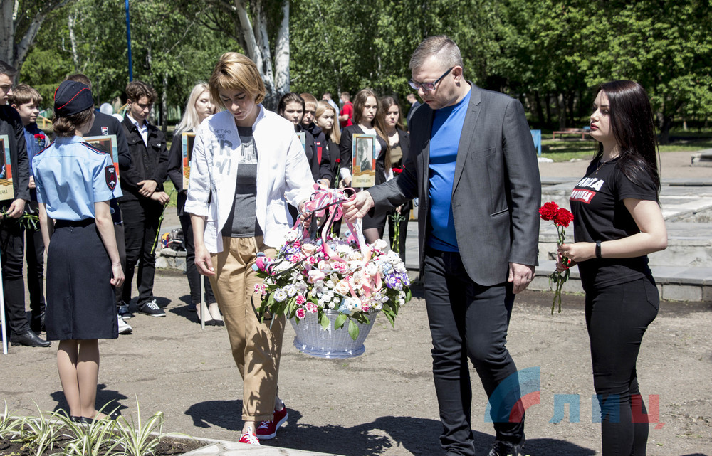 Активисты общественных организаций и студенты провели в Луганске митинг-реквием у Аллеи памяти детей, погибших от обстрелов ВСУ.
