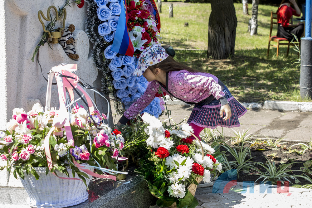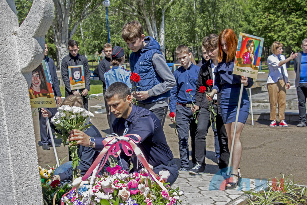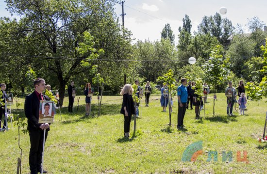 Участники мероприятия почтили память погибших детей минутой молчания, стоя у именных деревьев, высаженных в память о 34 юных жертвах украинской агрессии. Затем участники митинга-реквиема возложили цветы к установленному в парке памятному знаку «Погибшим детям Луганщины».