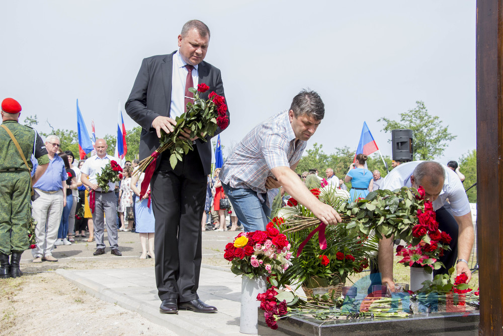 У поселка Металлист прошел митинг-реквием памяти журналистов Всероссийской государственной телерадиокомпании Игоря Корнелюка и Антона Волошина в шестую годовщину их гибели.