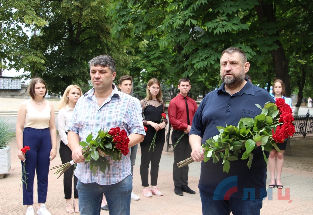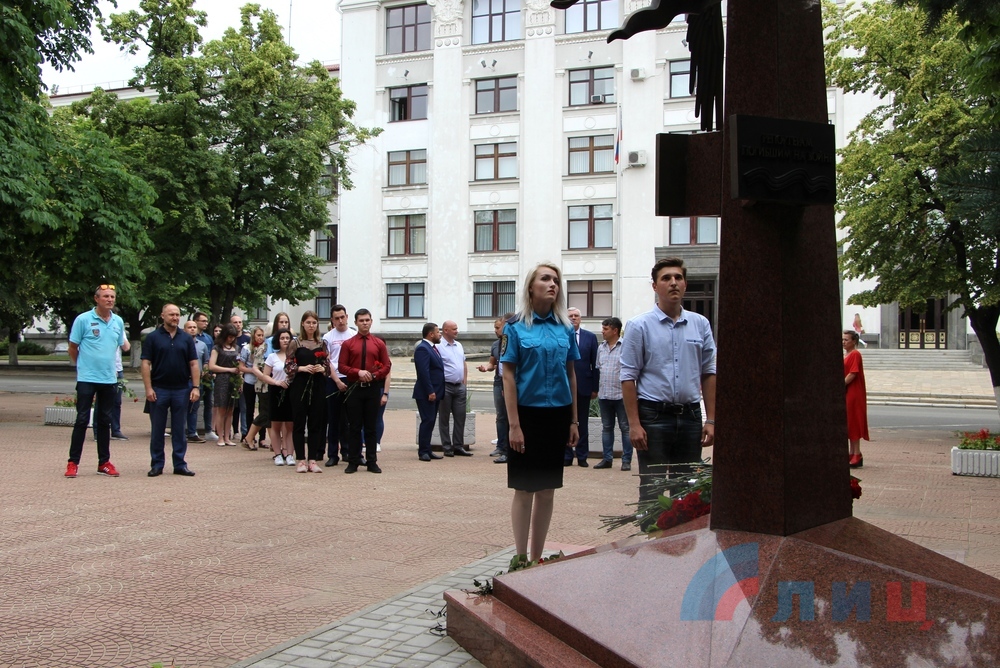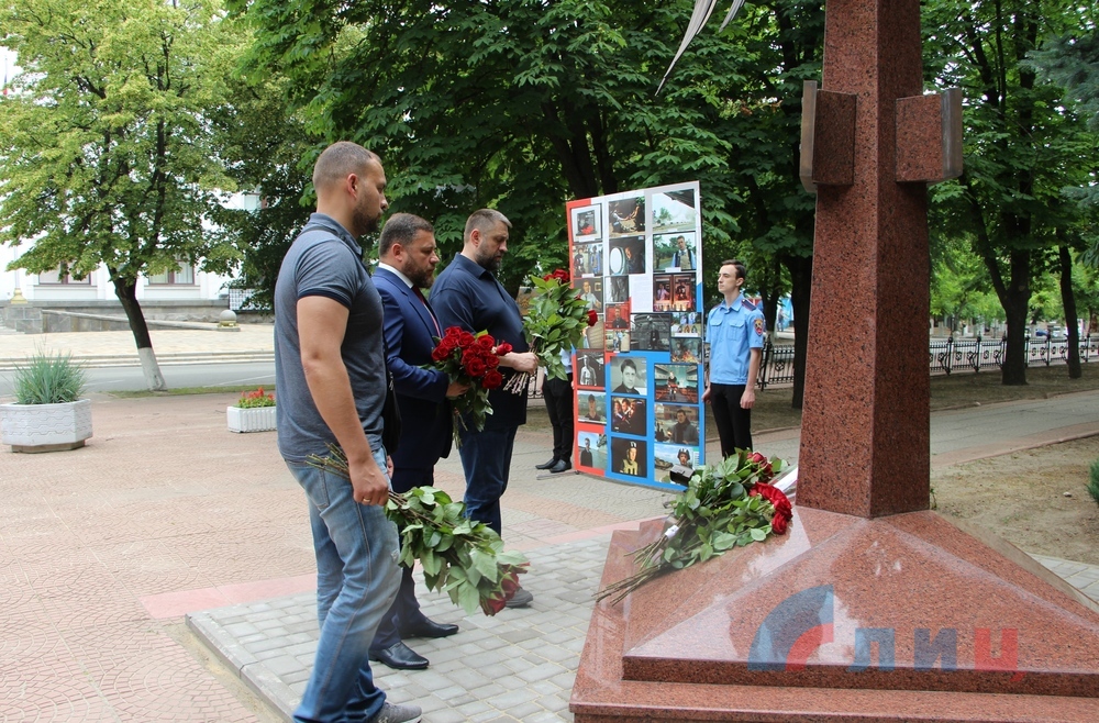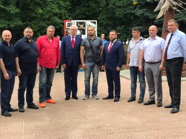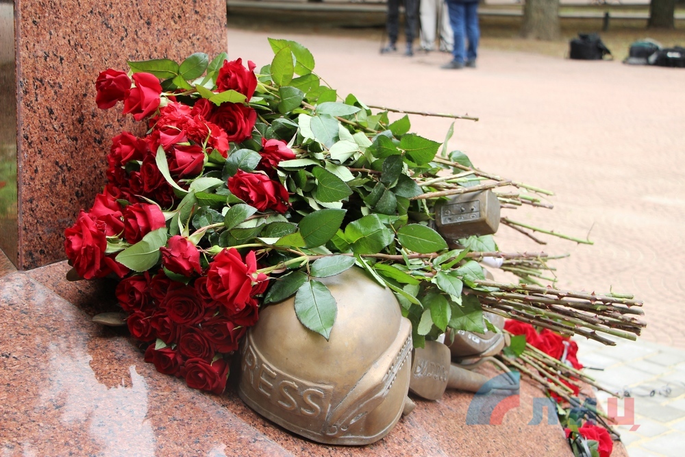Сообщается, что собравшиеся возложили цветы к памятному знаку журналистам, погибшим в Донбассе в результате киевской агрессии.
