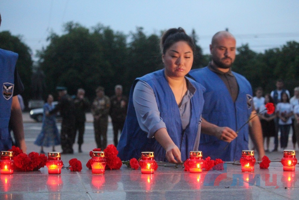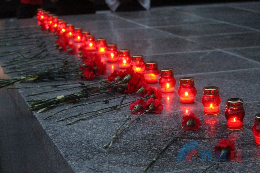 Митинг-реквием «Свеча памяти» организовали активисты проектов общественного движения «Мир Луганщине», участие в нем приняли представители Народного Совета, Совета министров ЛНР, защитники Донбасса, воины-интернационалисты и ветеран Великой Отечественной войны, заместитель председателя Республиканского совета ветеранов по патриотическому воспитанию молодежи, историк Анатолий Бондарь.