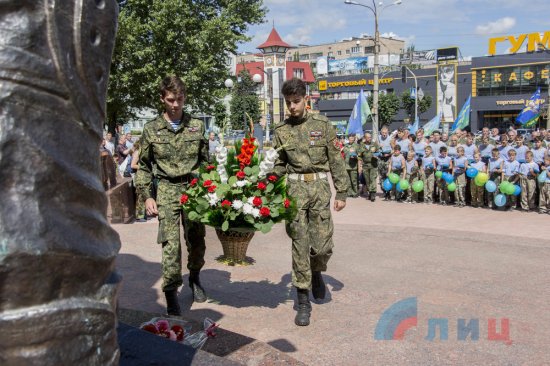 Затем в центре Луганска в ходе торжественного митинга состоялась церемония открытия Сквера десантников и бюста создателя современных ВДВ генерала армии Василия Маргелова.