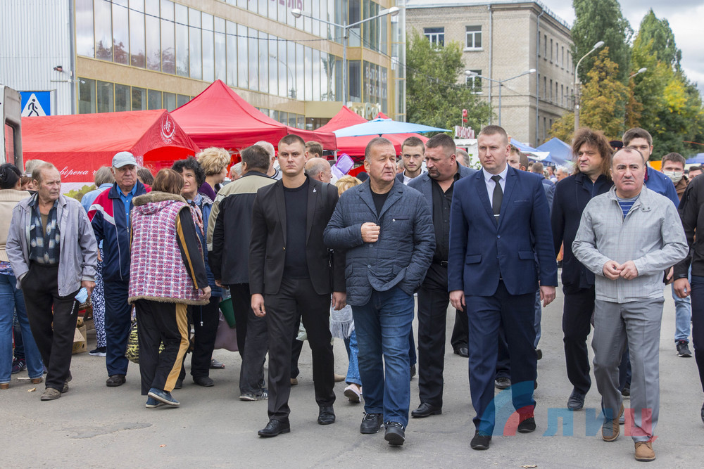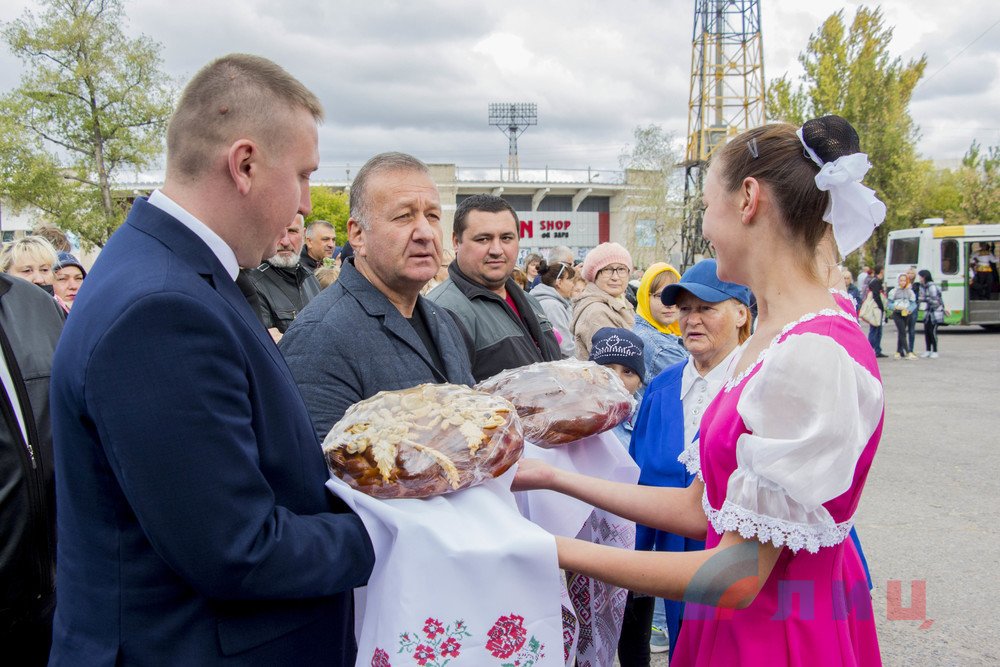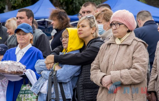 Ярмарочную площадь посетили представители Народного Совета ЛНР и администрации Луганска. Традиционно почетных гостей встретили праздничным караваем.