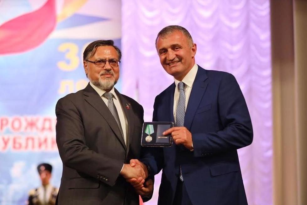 Награда была вручена Бибилову «за особые заслуги в укреплении мира, дружбы и сотрудничества с Луганской Народной Республикой, взаимопомощь и поддержку, а также по случаю 90-летия со дня создания Воздушно-десантных войск».