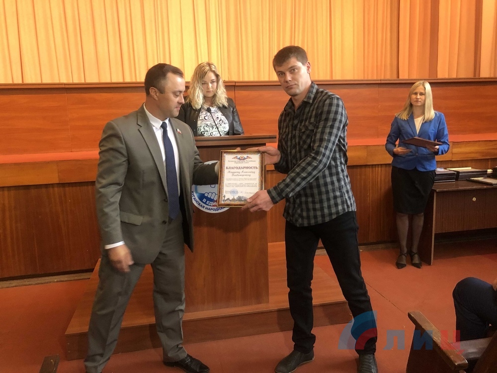 Заместитель председателя комитета Народного Совета ЛНР по вопросам промышленной и аграрной политики, строительства и жилищно-коммунального хозяйства, инфраструктуры, транспорта и топливно-энергетического комплекса Владимир Санкин поблагодарил ветеранов-машиностроителей и действующих работников за добросовестный труд, вручив лучшим из них благодарности парламента. Он вручил отличившимся работникам машиностроительной отрасли благодарности Правительства ЛНР, ведомственные грамоты и благодарности.