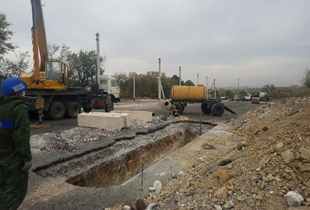 Специалисты установили столбы линий электропередачи на оборудуемых контрольных пунктах пропуска в районах Счастья и Золотого.