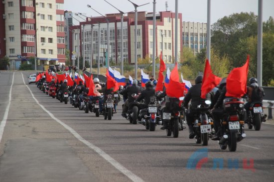 В Луганске прошел ежегодный мотопробег в честь закрытия очередного сезона, на котором собрались около 400 любителей мотоциклов из ЛНР и ДНР.
