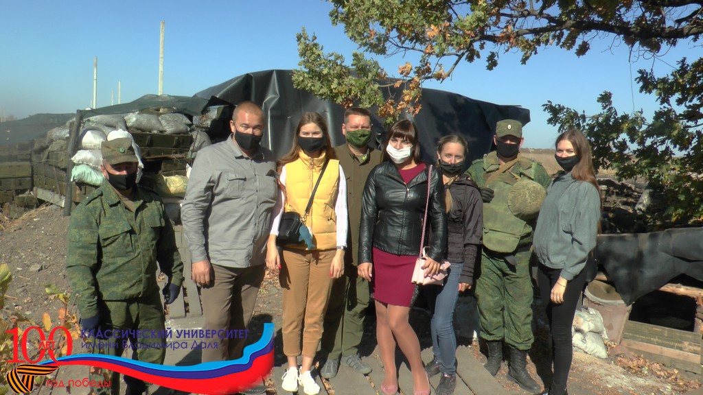 Студенты Луганского государственного университета имени Владимира Даля совместно с депутатом Народного Совета Олегом Дадоновым выехали на передовую, чтобы поздравить военнослужащих Народной милиции с шестой годовщиной формирования ведомства.