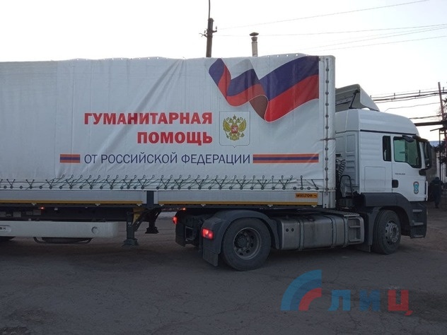Сообщается, что восемь автомобилей доставили в столицу ЛНР 109,3 тонны медицинского оборудования и медикаментов.