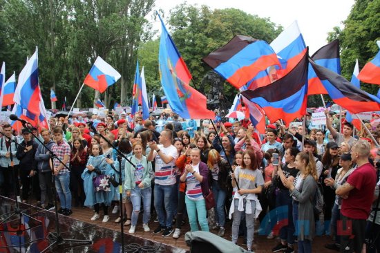 Жители Луганской Народной Республики приняли участие в акции, которую организовали в честь первого миллиона подписей, собранного под петицией к президенту Украины Владимиру Зеленскому «#ЗеленскийПризнайВыборДонбасса».