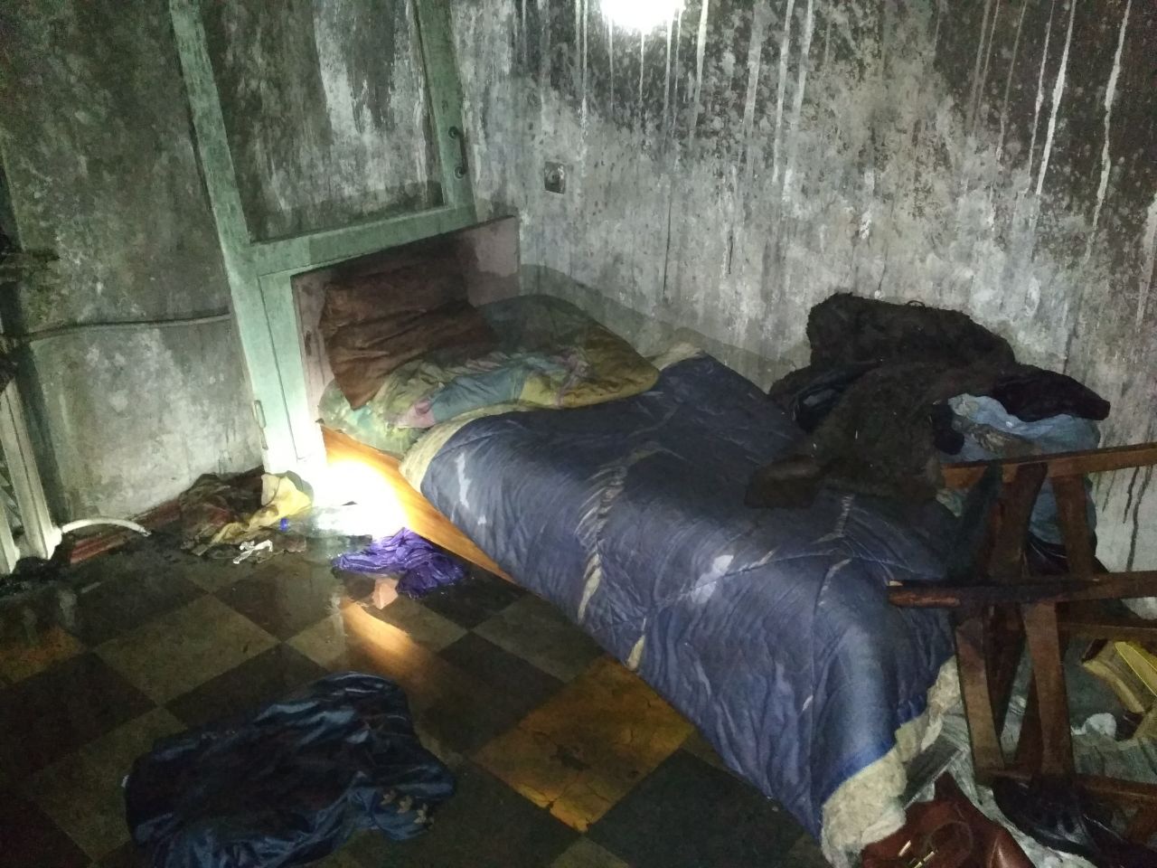 В спальне на кровати был обнаружен мужчина, который практически не подавал признаков жизни. Его вынесли на свежий воздух и подключили к аппарату искусственной вентиляции легких ГС-10. Также вызвали скорую помощь.