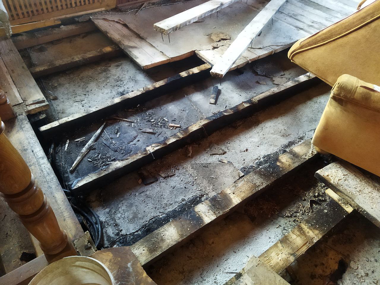 Пожар ликвидирован, очаг возгорания находился в месте расположения розетки в коридоре. Огнем уничтожены 6 кв. м деревянной облицовки стены, 12 кв. м потолка первого этажа в коридоре, 4 кв. м пола на втором этаже.