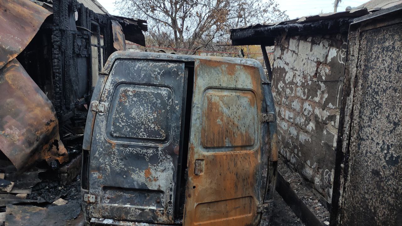 Пожар был ликвидирован, огнем уничтожены автомобиль «Соболь», крыша гаража на пл. 25 кв. м, хозпостройки на пл. 15 кв. м, домашние вещи на пл. 7 кв. м. Повреждены крыша жилого дома на пл. 40 кв. м, автомобиль ГАЗ 3110. Вероятная причина – неосторожное обращение с огнем.